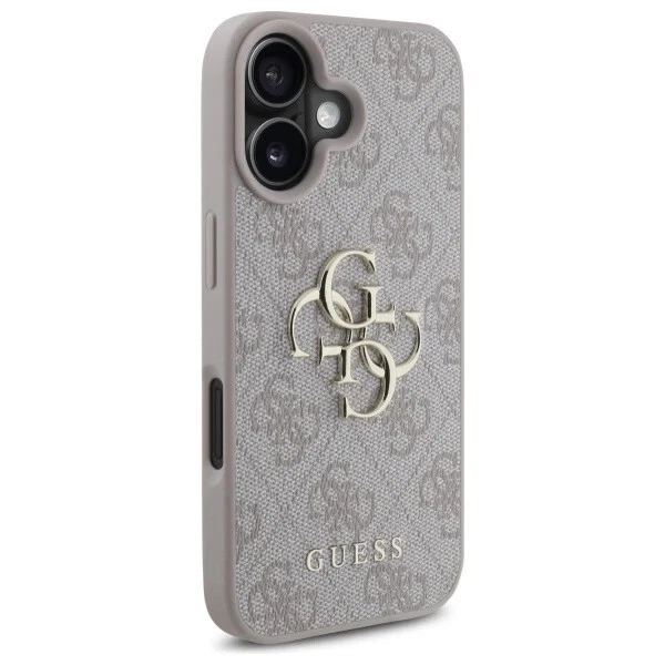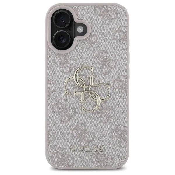 Genuine Guess Metal Logo Hard Case 4G for iPhone 16 Pink