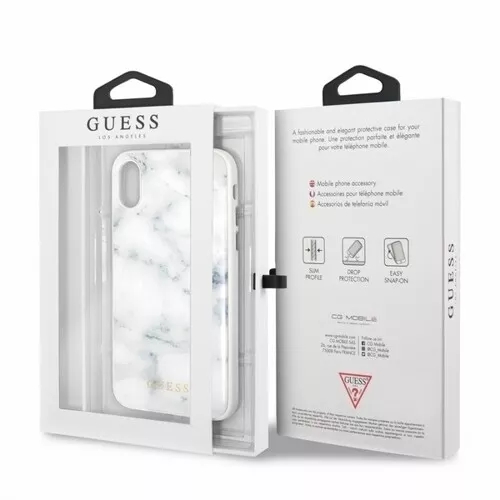 Comprising a single piece of ultra-thin polycarbonate overlaid with a beautiful marble-effect aesthetic, this iPhone X or XS case truly brings the bling without ever being tacky. The Marble case from Guess wraps itself effortlessly around your device, clinging to its every contour and providing protection while augmenting the aesthetic of your iPhone and looking simply stunning while doing so.