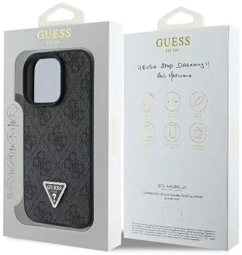 For decades, the Guess brand has been equated with excellent design and the highest quality. The new collection of 4G protective cases is based on the same values. It is characterised by a printed 4G logo on a luxurious leather texture, signed with a metal, triangular Guess logo. The case is made of a combination of high-quality polycarbonate (back) and ecological leather and flexible TPU silicone (sides), which ensures easy installation.